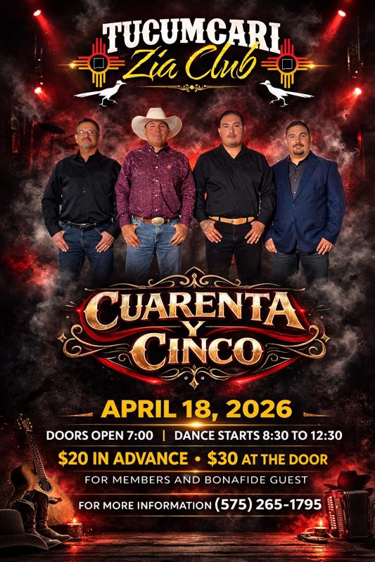 Events  ZIA CLUB Cuarenta y Cinco APRIL 18th, 2026 Tucumcari, NM Doors Open 7:00 pm – Dance 8:30 pm – 12:30 am For More Information (575) 265-1795 LOW RIDER FIESTA Cinco de Mayo Cuarenta y Cinco May 02, 202612 – 6 Albuquerque Rail YardsAlbuquerque, New Mexico OVERTIME SPORTS BAR 4100 San Mateo Blvd NE Cuarenta y Cinco MAY 22nd, 2026 Albuquerque, NM 8:00 pm – 12:00 am Ticket Information (575) 781-7392